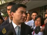 Hundreds of "Red Shirt" supporters gather outside Bangkok's criminal court as the leaders of the protest movement hear their terrorism trial is postponed until November 2012. They are charged in connection with street protests in Bangkok in 2010 which left at least 90 people dead in a bloody military crackdown. Duration: 00:37