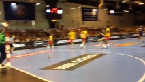 Retrouvez le Danois Mikkel Hansen au micro , en marge de la présentation de la section handball du Paris Saint-Germain, au Parc des Princes.