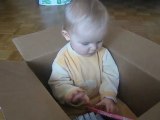 Daïa joue avec un tube de carton!