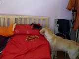 Zardos si a 2 years old labrador and Mickey a 2 month young kitten that was found in a Garbage bag... will they be friend? :-)
