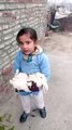 Cute baby playing with baby rabbits