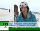 Snowboarders and ski jumpers from all over Russia have recently been busy testing out the slopes of Russia's highest peak. Every July the Elbrus Summer Camp hosts hundreds of riders showing off their skills.