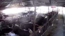Ahırda yatan büyükbaşlar depremle birlikte böyle ayağa kalktı