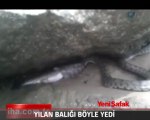 Rize’nin Ardeşen ilçesi Fırtına deresi kenarında yakaladığı balığı yutmaya çalışan 1,5 metre uzunluğundaki su yılanının görüntüleri cep telefonuna saniye saniye kaydedildi.