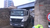 Tır köprüye takıldı