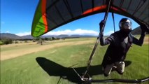 Speed Hang Glider Soars Down Ski Slope