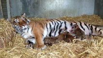 Quatre bébés tigre du cirque Fabio Zavatta nés à Jussey (70), âgés d'un jour et demi seulement. Vidéo Est Républicain. DR