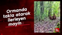 Ormanda takla atarak ilerleyen maymun