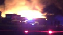 The towering stacks of pallets erupted into massive bonfires as fire-fighers tried to tackle the flames from the tops of ladders.