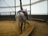 Netty sur Arto prépare la partie "voltige cosaque" de son numéro qu' elle présentera au Festival Mondial du Cirque de Demain... Pis moi et mon bonnet qui lui donnons un coup de main.